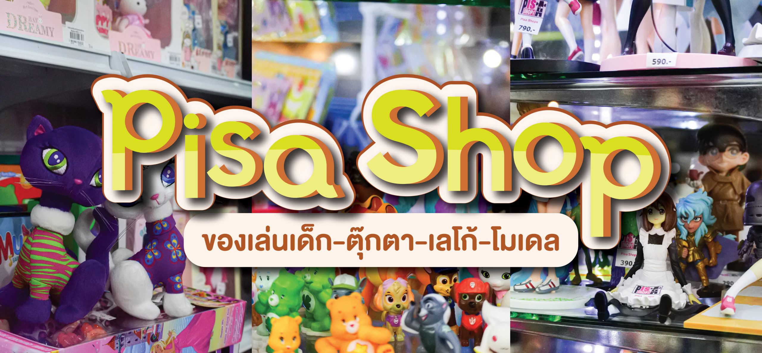 Pisa Shop ร้านขายของเล่น มีทั้งตุ๊กตา ตัวต่อเลโก้ โมเดล และอื่นๆอีกมากมาย ใครมีสาวลูกชาย บอกเลยว่าต้องชอบแน่ๆ เพราะร้านเขามของเล่นให้เลือกเยอะมาก ทั้งงานลิขสิทธิ์แท้ ราคาจับต้องได้ จะซื้อไปฝากลูก ฝากลาน หรือซื้อให้ตัวเองก็ได้เหมือนกันนจ้า